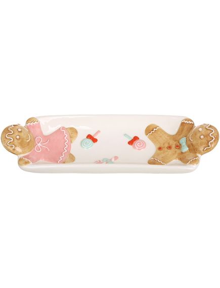 Це витончене святкове блюдо з серії «Пряникові Чоловічки» — справжній візуальний десерт! Витягнута форма (30 см) ідеально підходить для сервірування тістечок, печива, цукерок або рулетів, а ніжний рожевий декор у поєднанні з милим персонажем-пряником створює атмосферу домашнього тепла та свята.