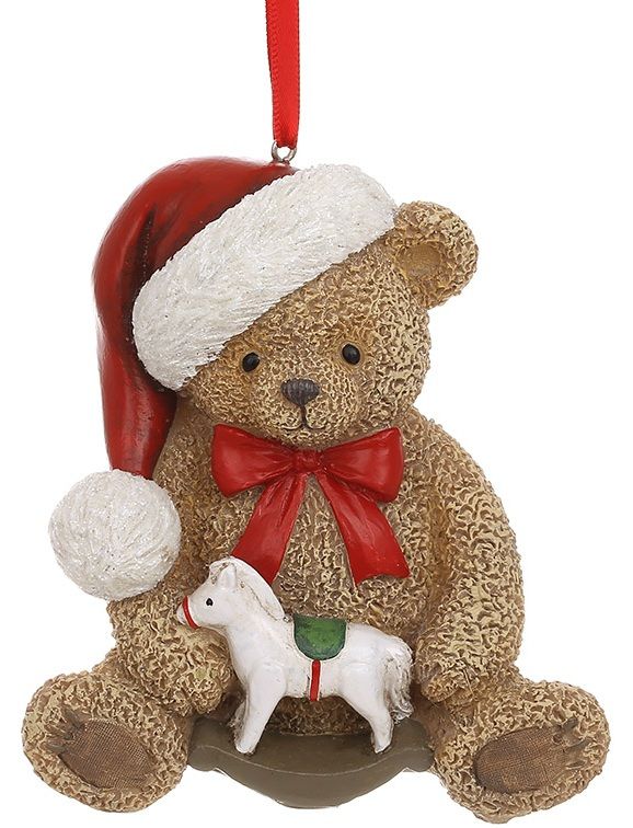Ялинкова іграшка Ведмедик Тедді з коником-гойдалкою 10,5 см