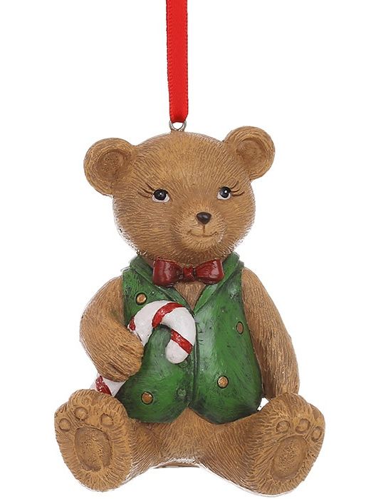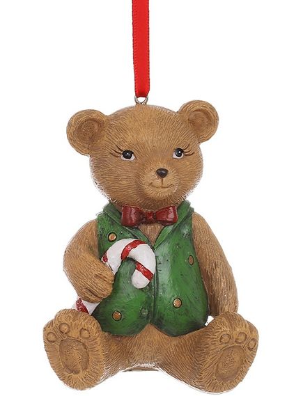 Ялинкова іграшка Ведмедик Тедді з льодяником 9 см