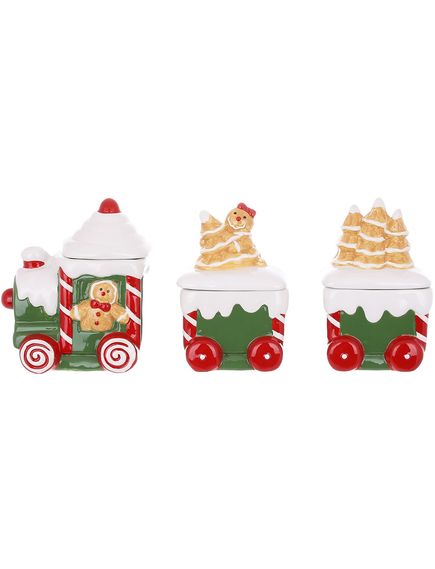 Набір банок для зберігання новорічних Пряникові Чоловічки в Паровозику 3шт. 450мл + 300мл + 300мл