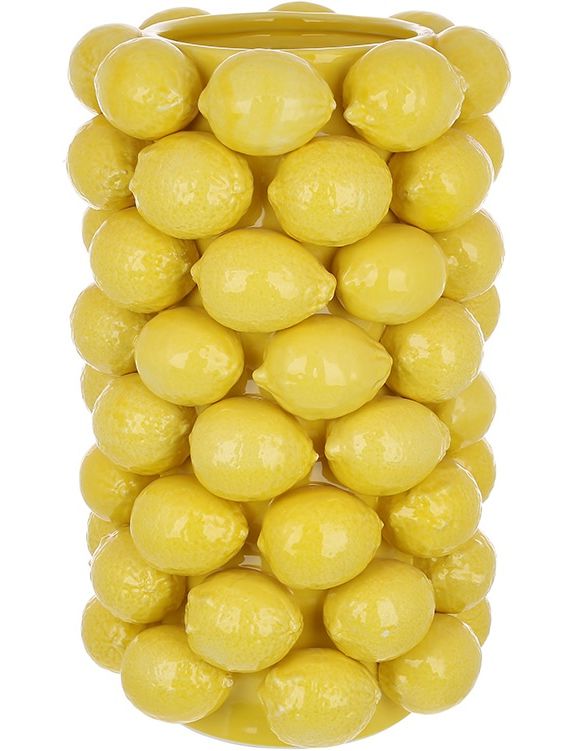 - Дизайн: Оригінальна форма вази з елементами лимонів додає свіжості та енергії.