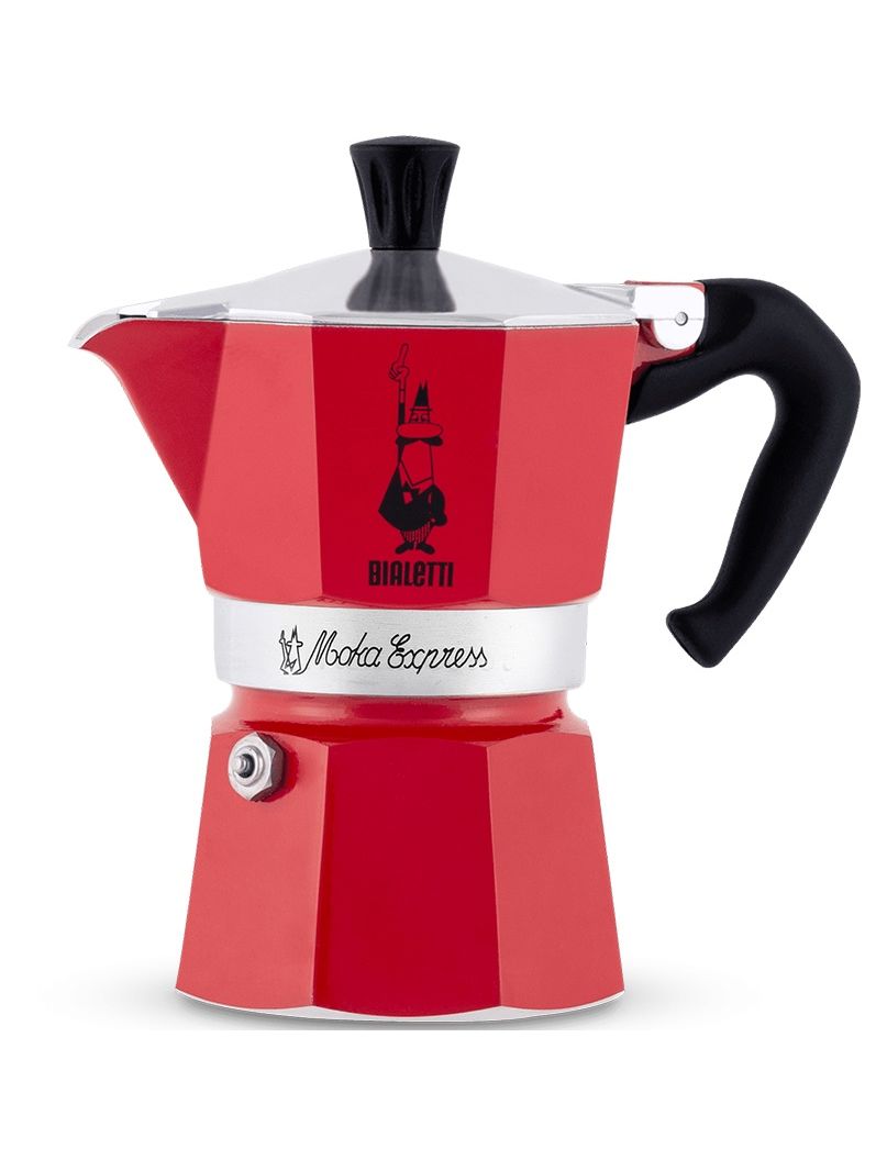 Bialetti Moka Express: це оригінальна кавоварка, символ якості Made in Italy, яка пропонує досвід справжнього італійського ритуалу приготування смачної чашки кави. Також доступний у двох різних кольорах: червоний або чорний. Його унікальна форма датується 1933 роком, коли його винайшов Альфонсо Біалетті. Що робить його ще більш унікальним, так це культовий Чоловік з вусами.