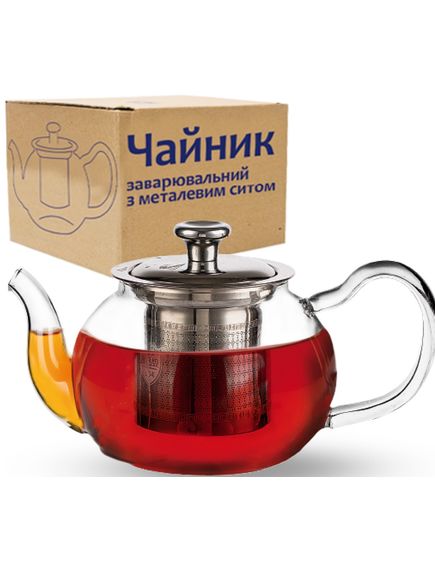 Чайник заварювальний скляний з металевим ситом Round Teapot 580 мл