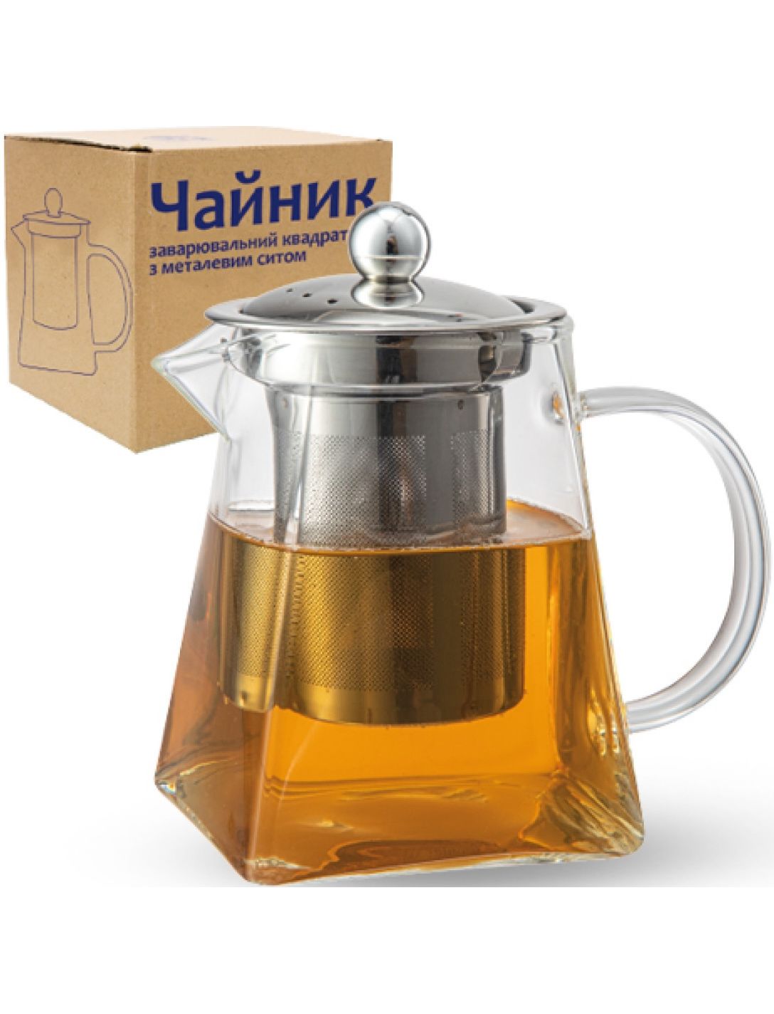 Чайник заварювальний скляний з металевим ситом Square Teapot 600 мл