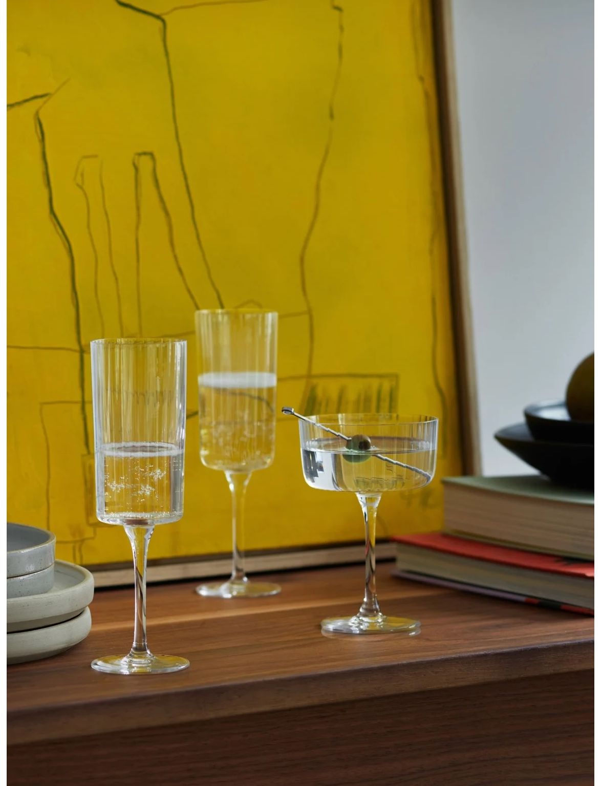 Набір келихів для коктейлю з чіткими лініями, м’якими прямокутними краями та зрізаними назад силуетами.