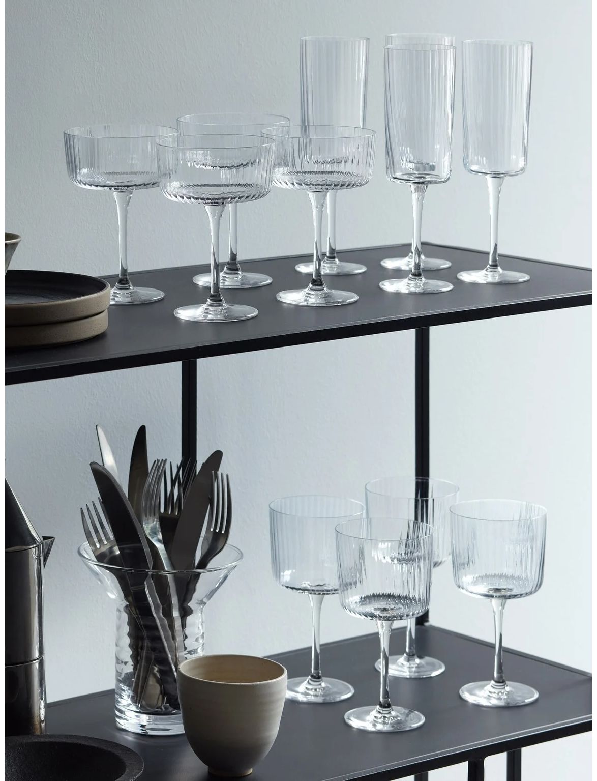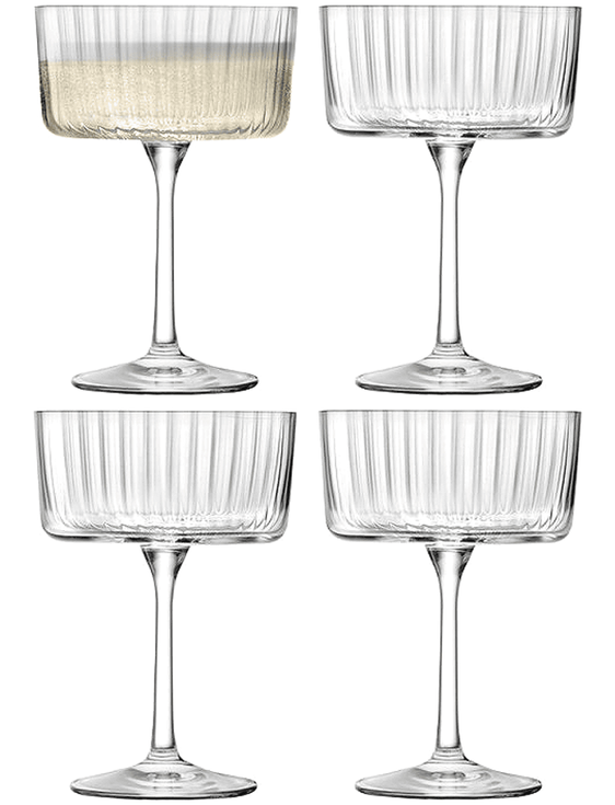 Набір із чотирьох блюдець для шампанського/коктейлю з тонкими текстурованими стінками, сучасною формою та простими ніжками. Для подачі шампанського, просекко та коктейлів.