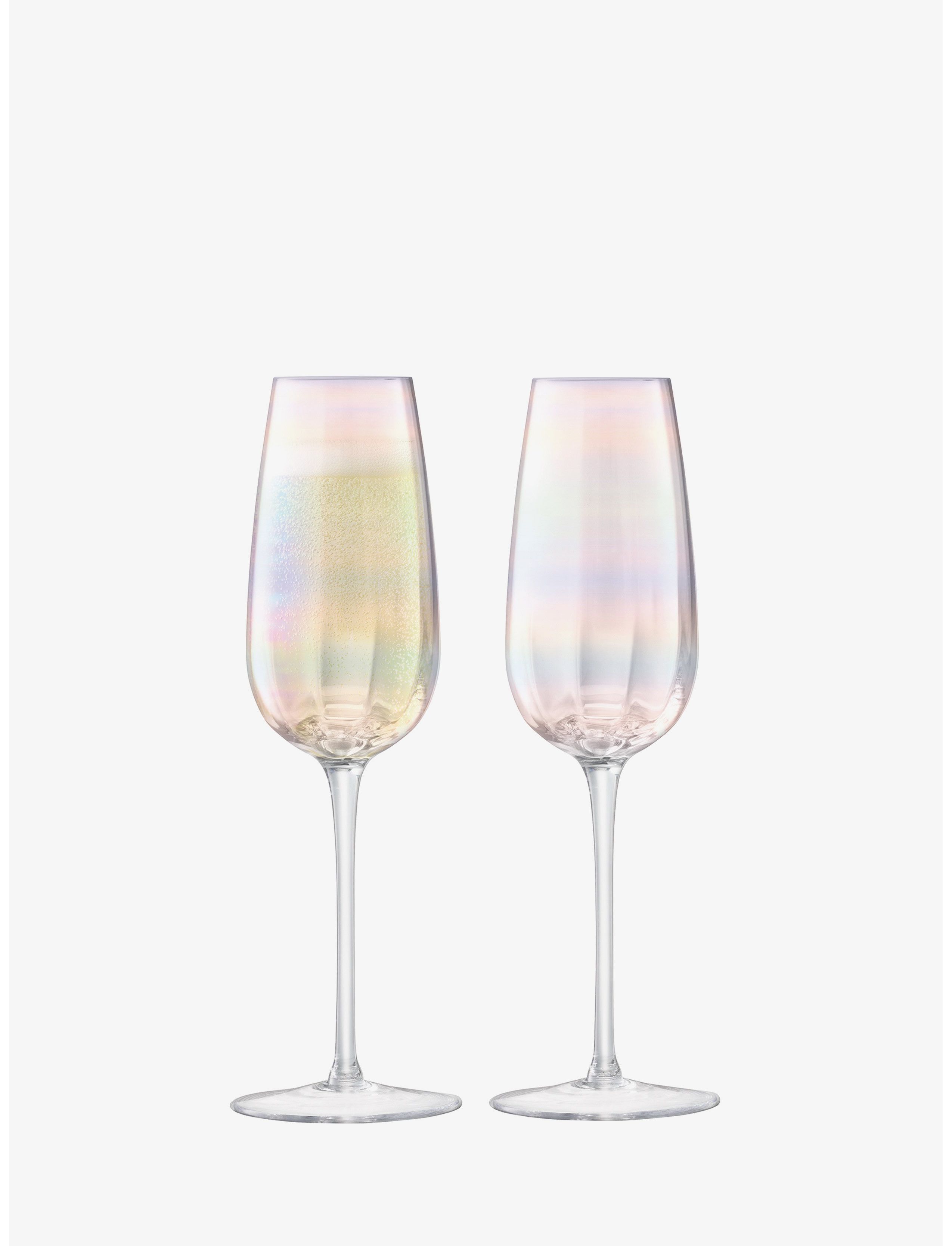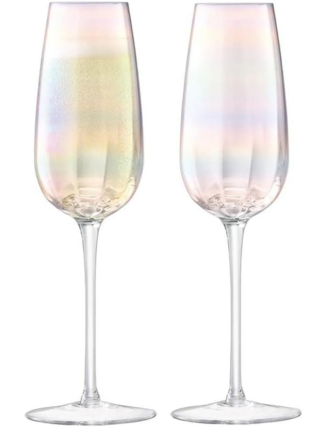 Набір із двох флейт для дуття, розписаних вручну райдужним блиском. Чаші мають ледь помітну рифлену текстуру, яка зникає до краю.