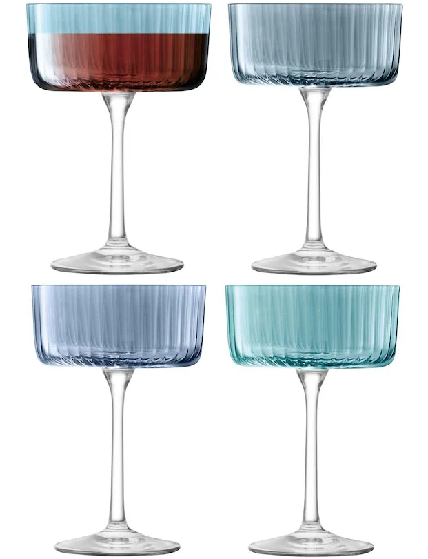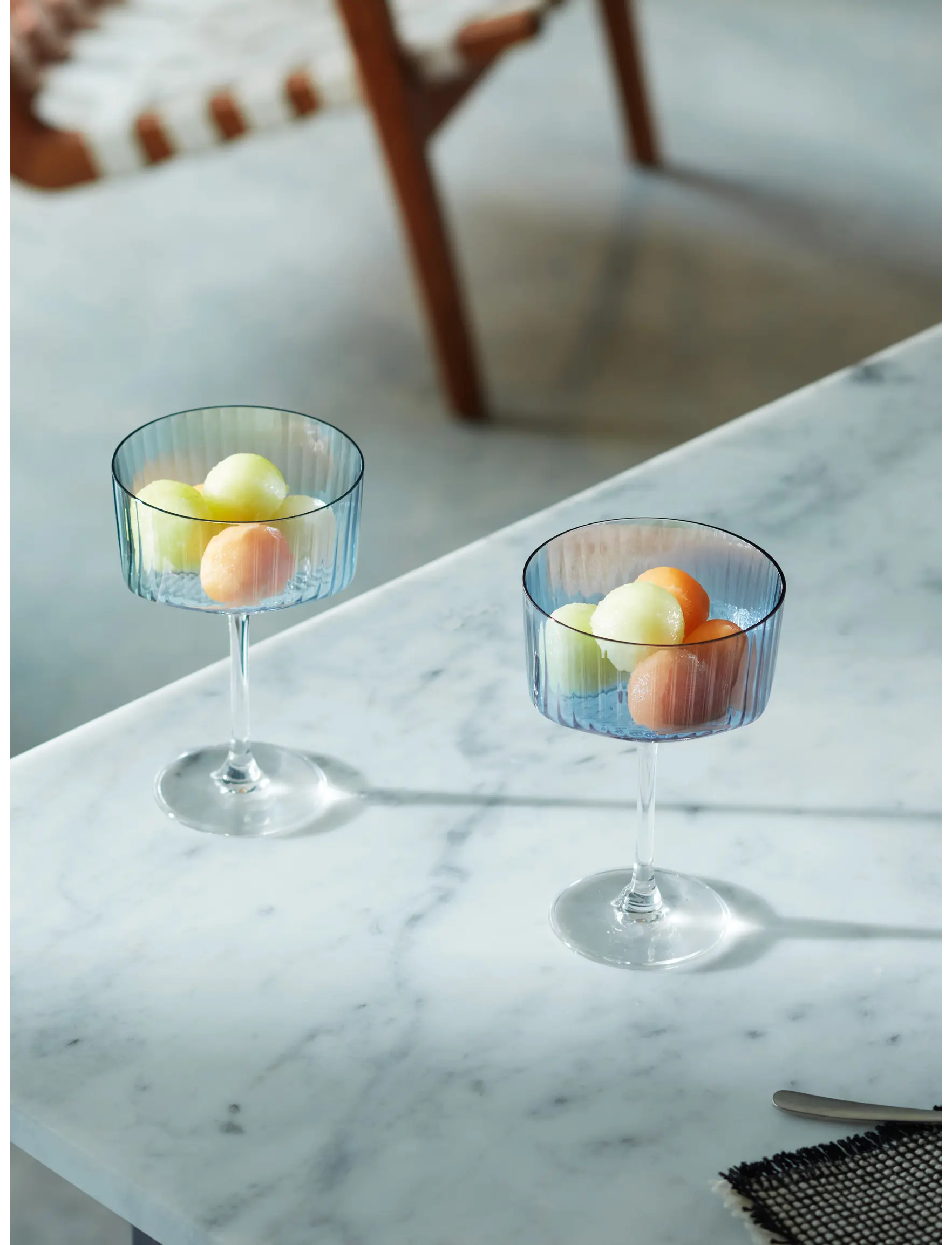 Набір текстурованих келихів для коктейлю з невимушеними ніжками та тонкими стінками, розписаних вручну в різноманітні тональні сапфірові кольори. Для подачі просекко, шампанського або коктейлів.