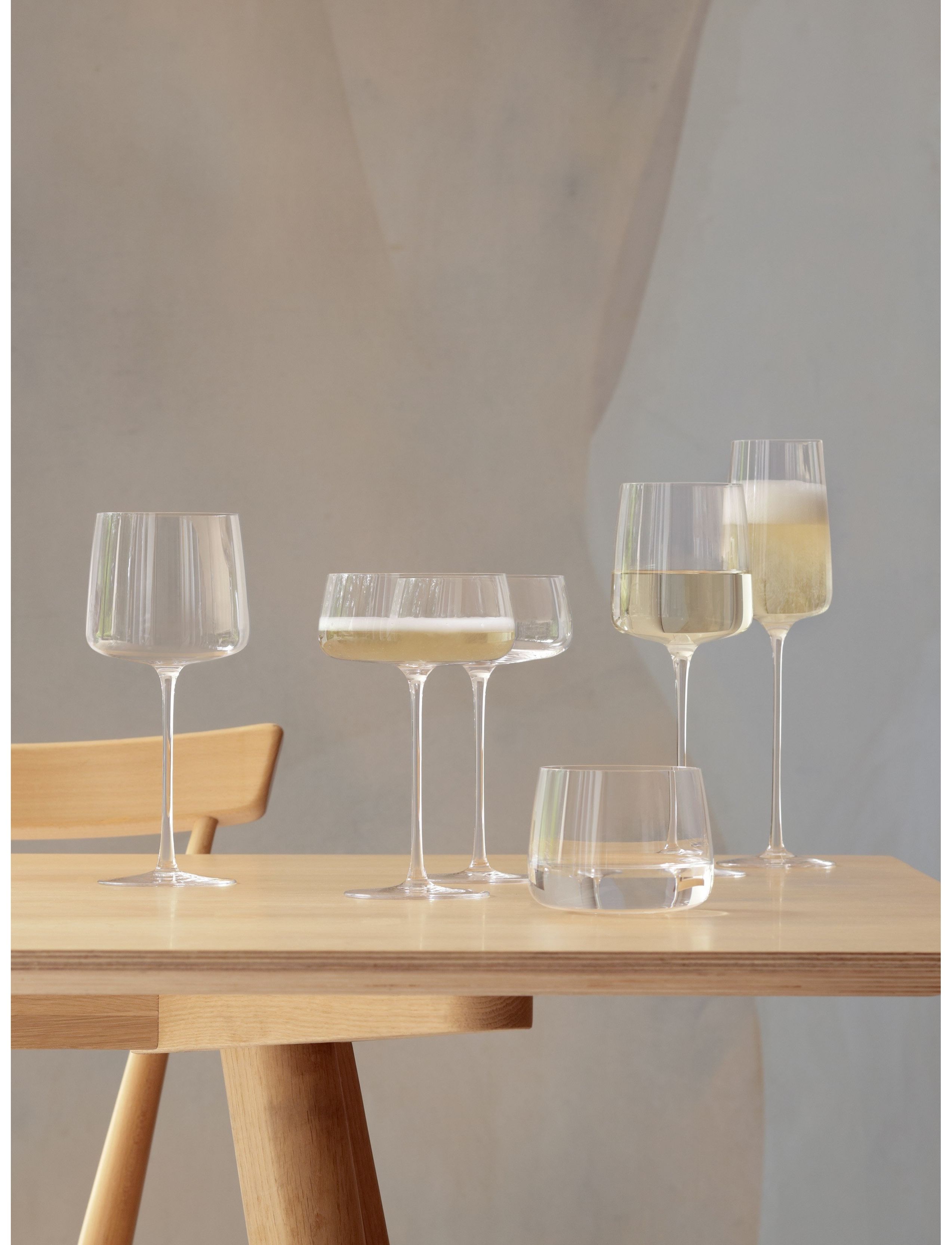 Дизайн і технологія поєднуються, щоб доповнити та імітувати процеси ручної роботи, в результаті чого бокали з холоднорізаними та відполірованими обідками з високими тонко витягнутими ніжками виготовлені з екологічно чистого кришталевого скла без вмісту свинцю. Якість скла гарантує високий рівень гнучкості та довговічності, блиску та прозорості.