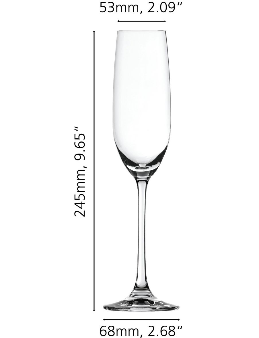 Класична флейта для шампанського ідеально підходить для легкого, свіжого, сухого шампанського, просекко та ігристих вин. Його тонка форма чудово підбадьорить кульку в шампанському та ігристому вині, що робить його вибором для тих цінителів, які шукають тонку та елегантну флейту.