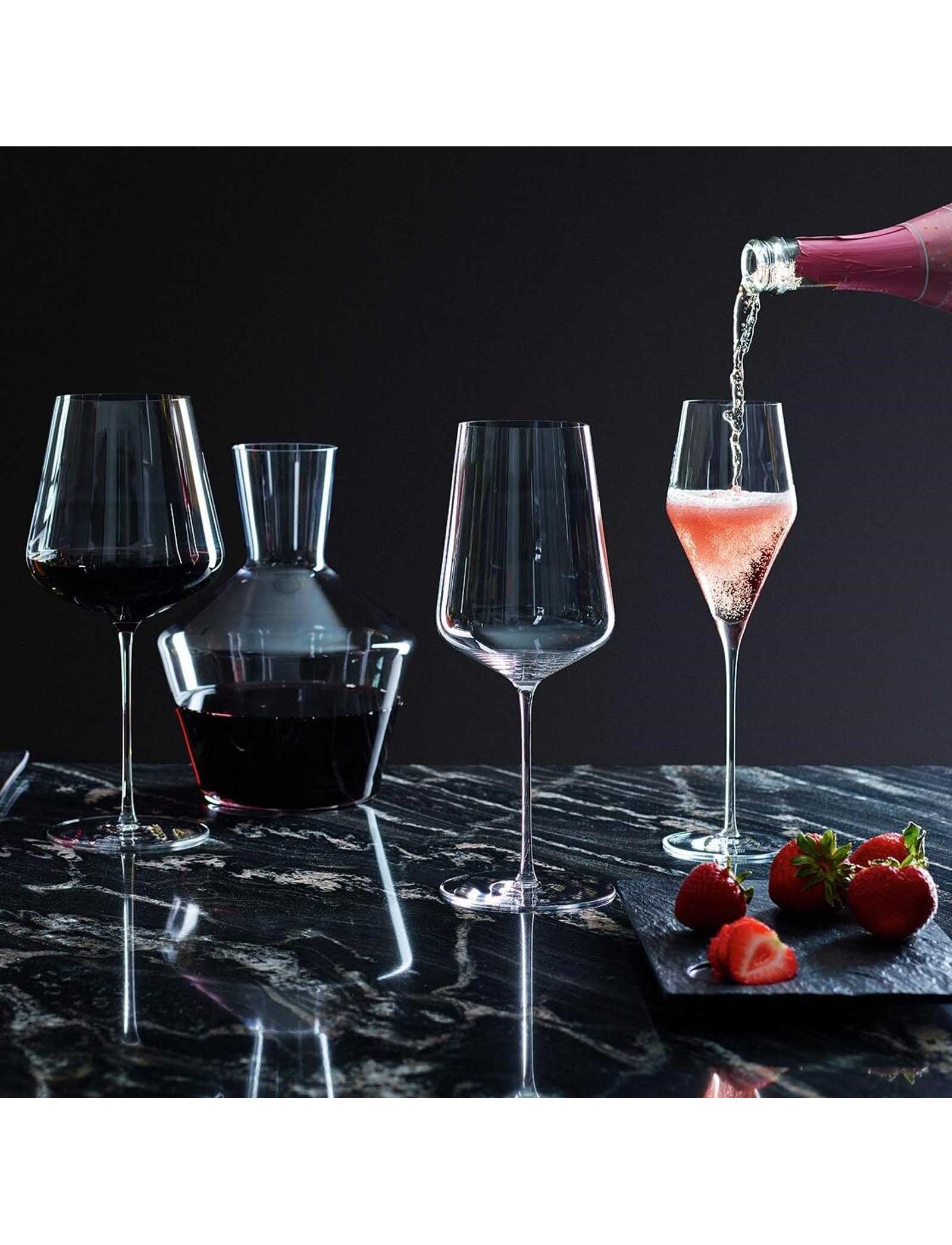 Цей келих елегантної форми для блискучої насолоди дарує чарівні бульбашки цього світу, вишуканість і шляхетність, посилюючи їх мінеральність.
