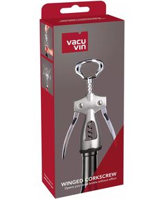 Крилатий штопор Vacu Vin — це наш погляд на класичний винний аксесуар. Знявши фольгу з пляшки, помістіть штопор на верхню частину пляшки з вином. Міцно тримаючи штопор, закрутіть дротяний штопор у пробку. Майте на увазі, щоб руки рухалися вгору, коли ви обертаєте ручку. Коли плечі будуть...