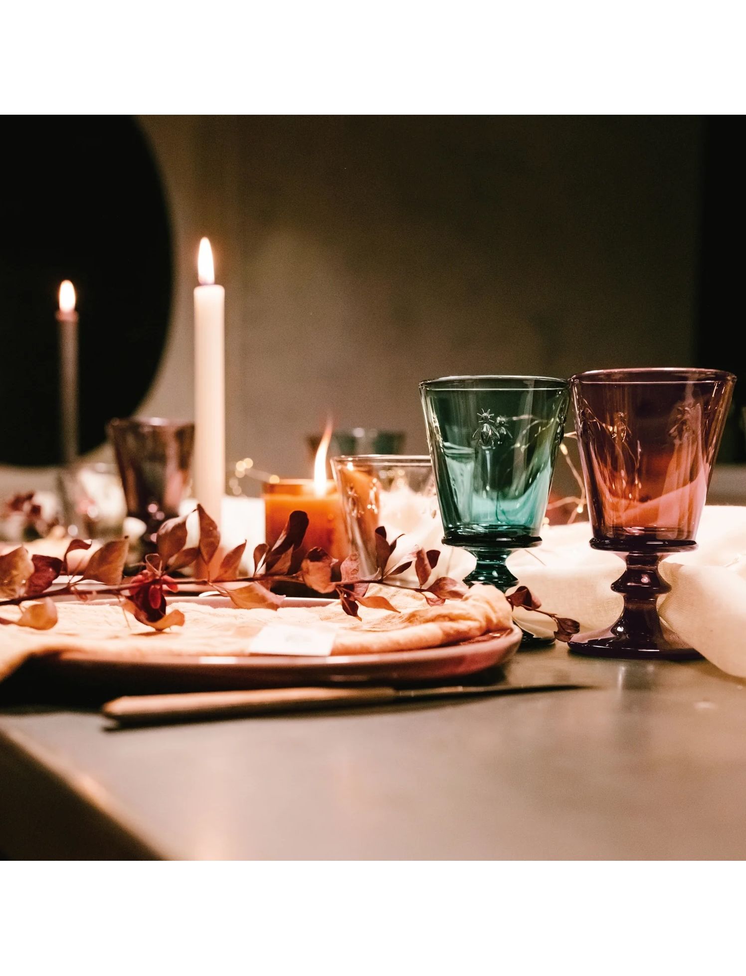 Пресоване скло на ніжці, тоноване масою та прикрашене чотирма бджолами. Ця колекція переймає символи шкіряних виробів Наполеона.