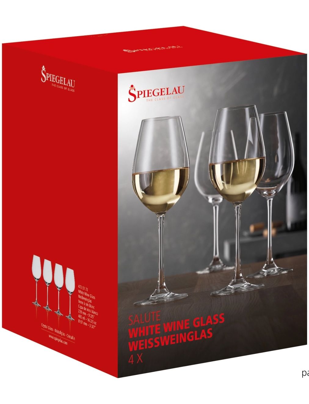 Високий блиск, можливість мити в посудомийній машині та довговічність роблять ці склянки ідеальними для різноманітного використання. У будь-якій обстановці склянки Salute додають стилю та елегантності завдяки різним формам келихів для Бордо, Бургундії, Червоного вина, Білого вина та Шампанського.
