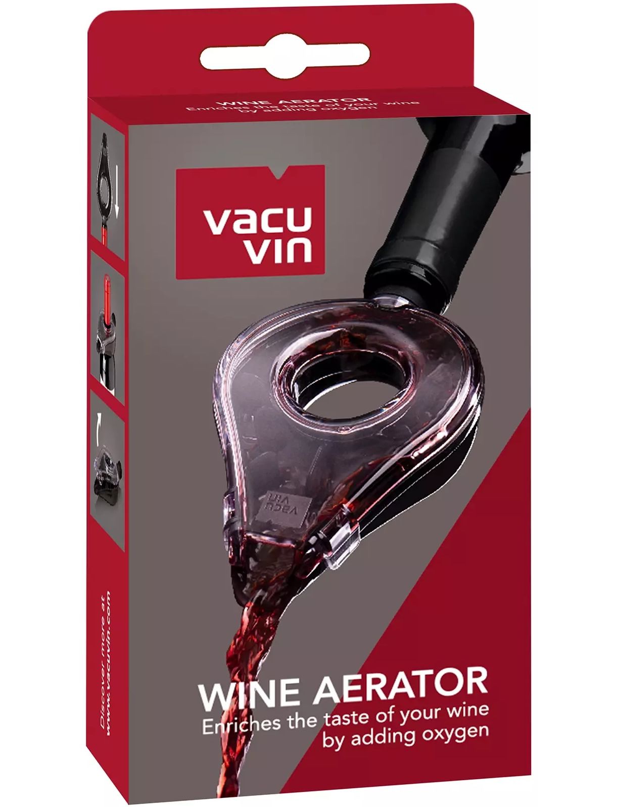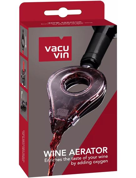 Аератор для вина Vacu Vin збагачує смак вина, додаючи кисень. Розливач для вина підходить для більшості пляшок із пробкою та кришкою, що загвинчується. Завдяки вбудованим перешкодам вино закручується через аератор, покращуючи поглинання кисню.