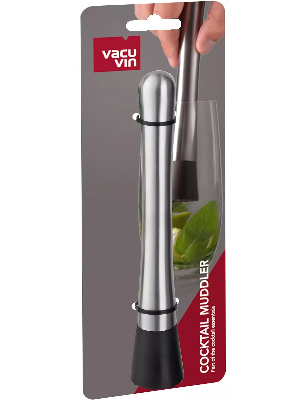 Vacu Vin Cocktail Muddler є частиною нашого Cocktail Essentials. Muddler подрібнює або подрібнює такі інгредієнти, як трави та фрукти для коктейлів. Його головка виготовлена з пластику, що дозволяє перемішувати інгредієнти, не пошкоджуючи склянку. Muddler можна мити в посудомийній машині.