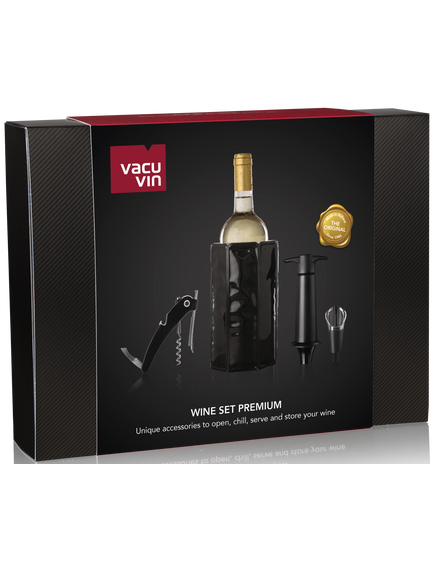 Vacu Vin Wine Set Premium містить 4 винні аксесуари для відкриття, охолодження, подачі та зберігання вашого вина. Це ідеальний подарунок для всіх любителів вина. Подарункова коробка збирається та упаковується на нашому підприємстві соціального виробництва в Нідерландах. Набір містить: