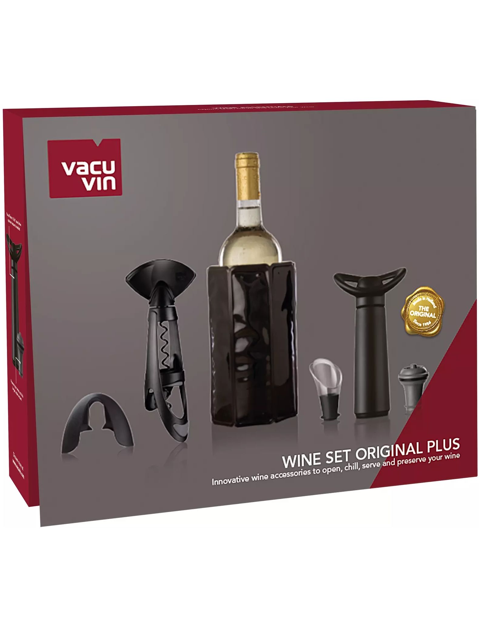 Vacu Vin Wine Set Original Plus містить 6 вин, які обов'язково потрібно відкривати, подавати, охолоджувати та зберігати ваше вино. Подарункова коробка збирається та упаковується на нашому підприємстві соціального виробництва в Нідерландах. Набір містить: