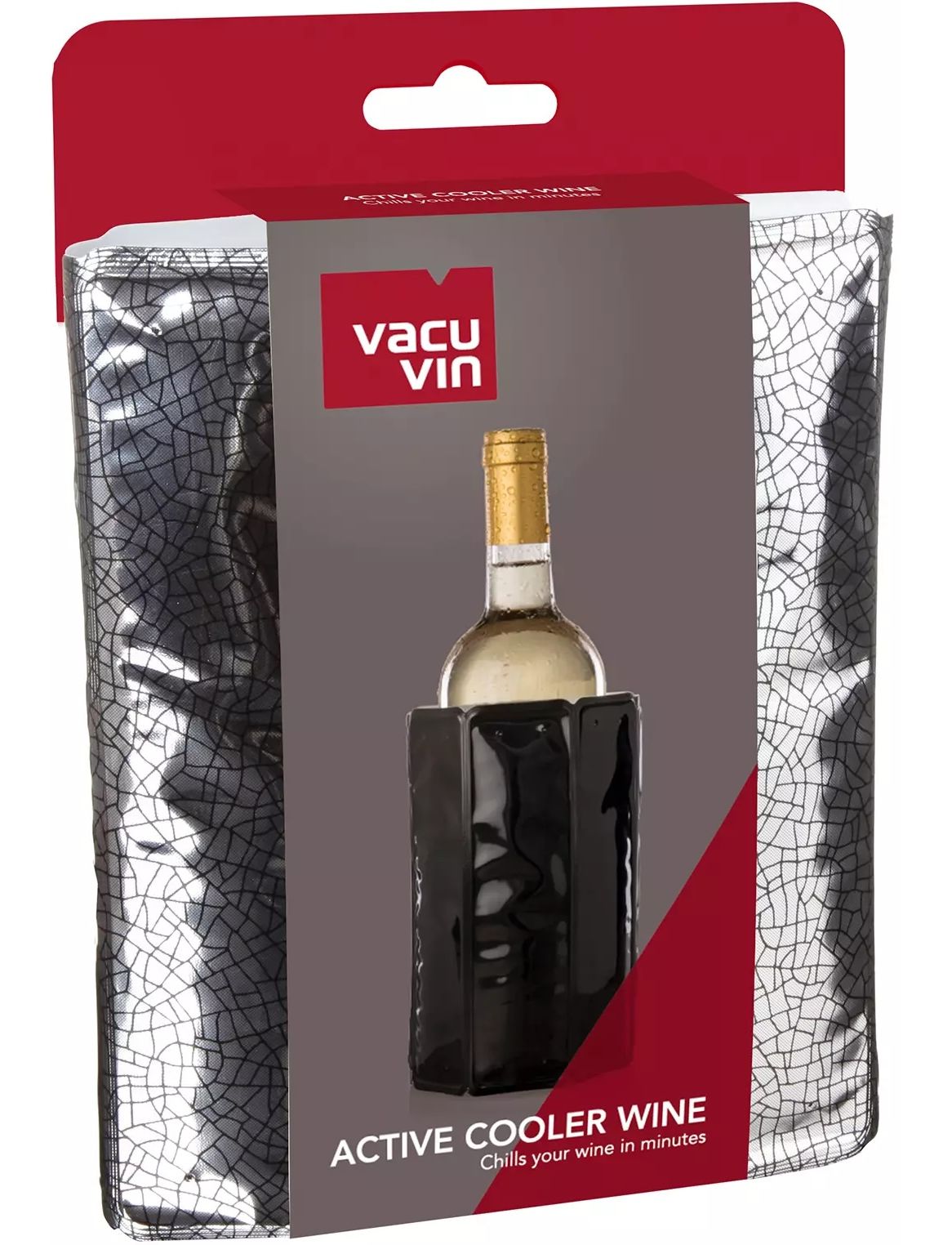Vacu Vin Active Cooler Wine Silver активно охолоджує вашу улюблену пляшку вина, зберігаючи її холодною та освіжаючою. Ізольований рукав для охолодження пляшки підтримує ідеальну температуру пляшки до останнього ковтка. Для оптимального використання зберігайте багаторазовий рукав у морозильній камері щонайменше 6 годин.