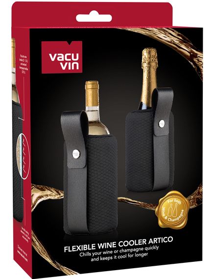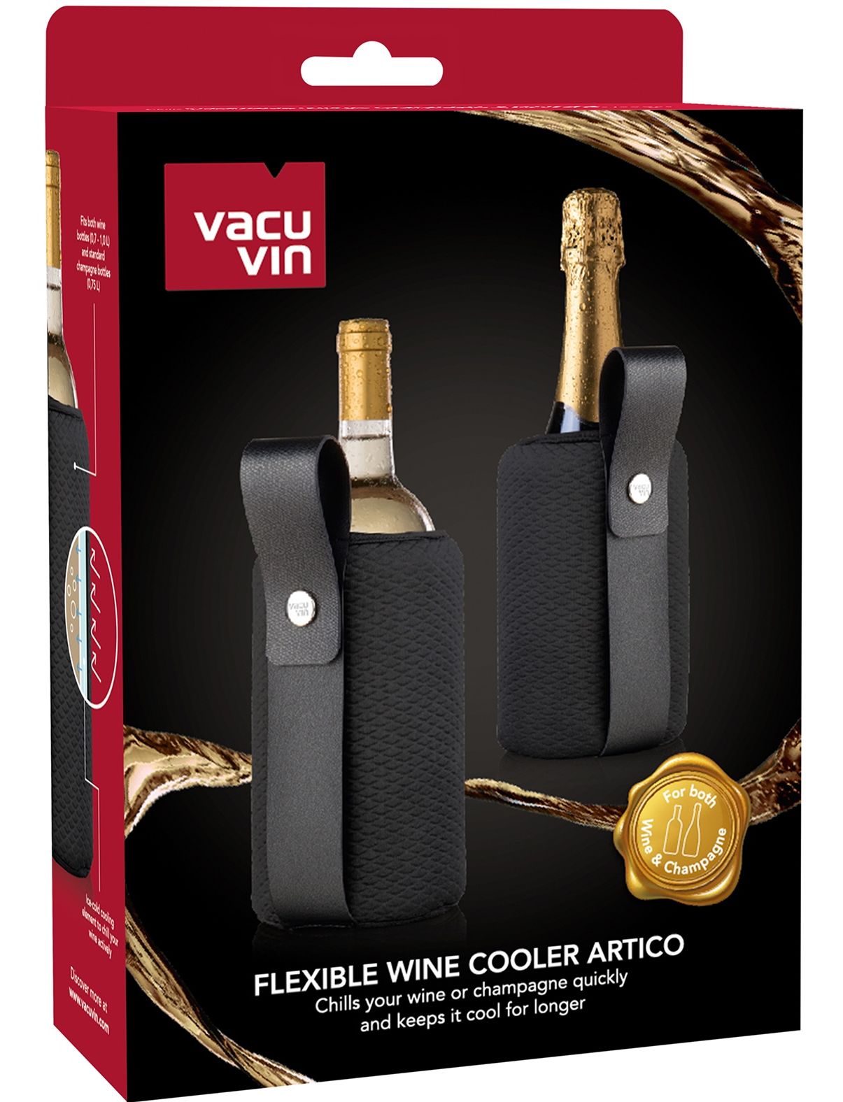 Vacu Vin Flexible Active Cooler Artico підходить для пляшок від 0,7 л до 1 л, пляшок для вина та стандартних пляшок для шампанського. Завдяки унікальній технології активного охолодження Artico швидко охолоджує ваш напій і зберігає його прохолодним до останнього ковтка.
