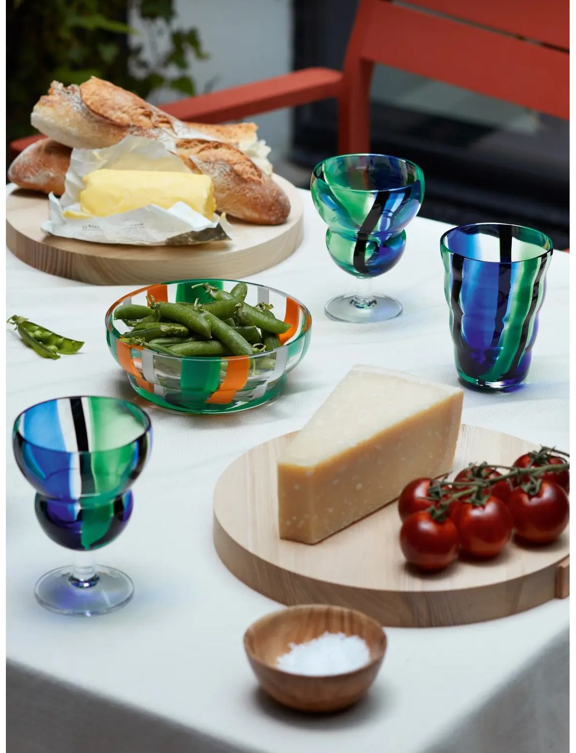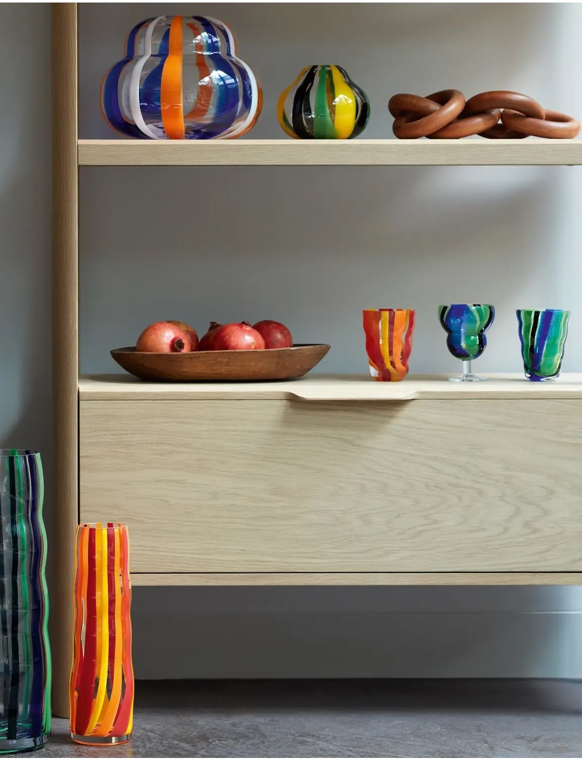 Кольоровий смугастий скляний посуд, натхненний традиційними польськими тканинами Łowicki.