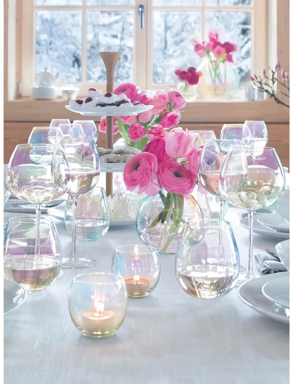 Натхненні мерехтінням перлин чаші розписані вручну, щоб створити прозоре райдужне покриття. Набір з 2 штук.