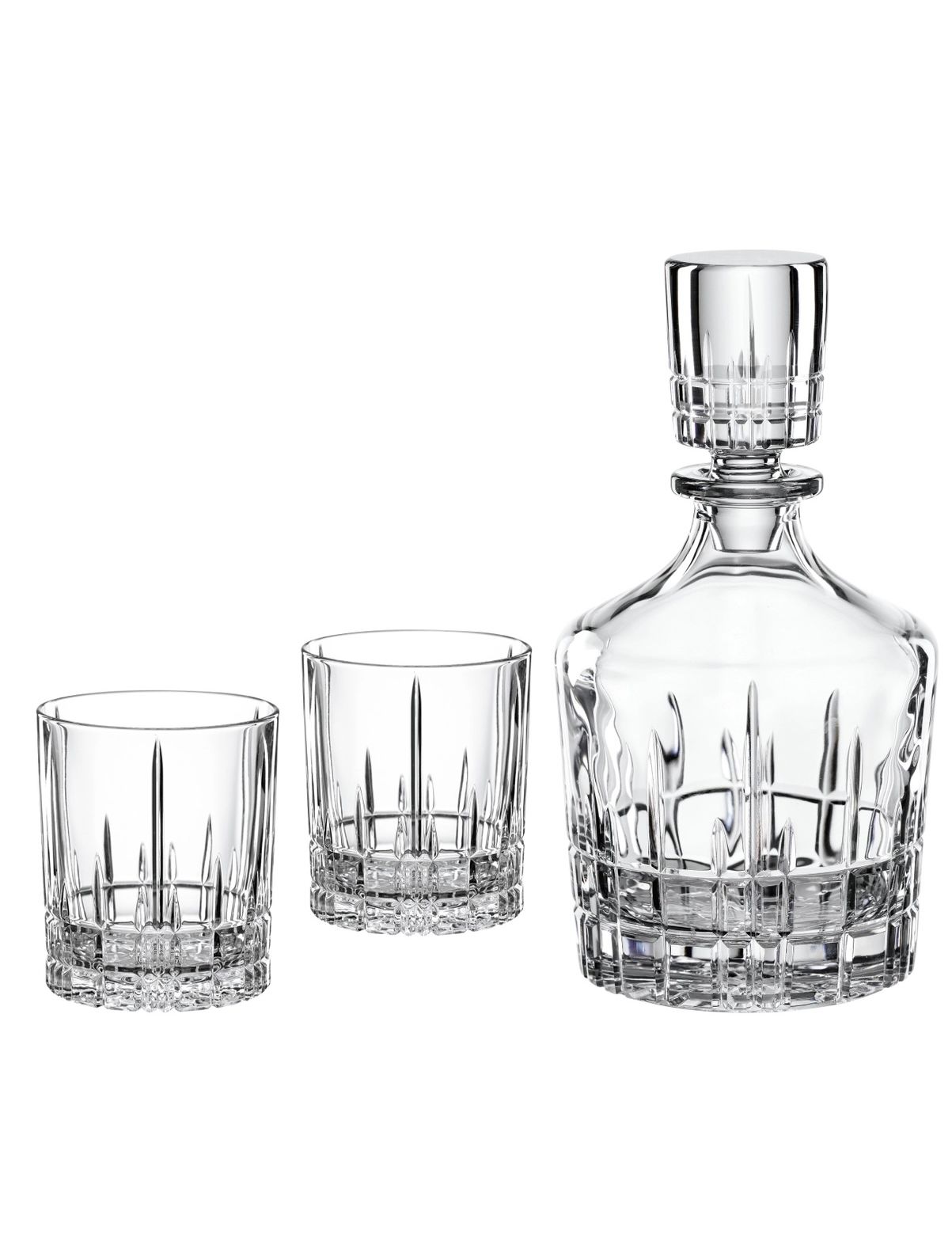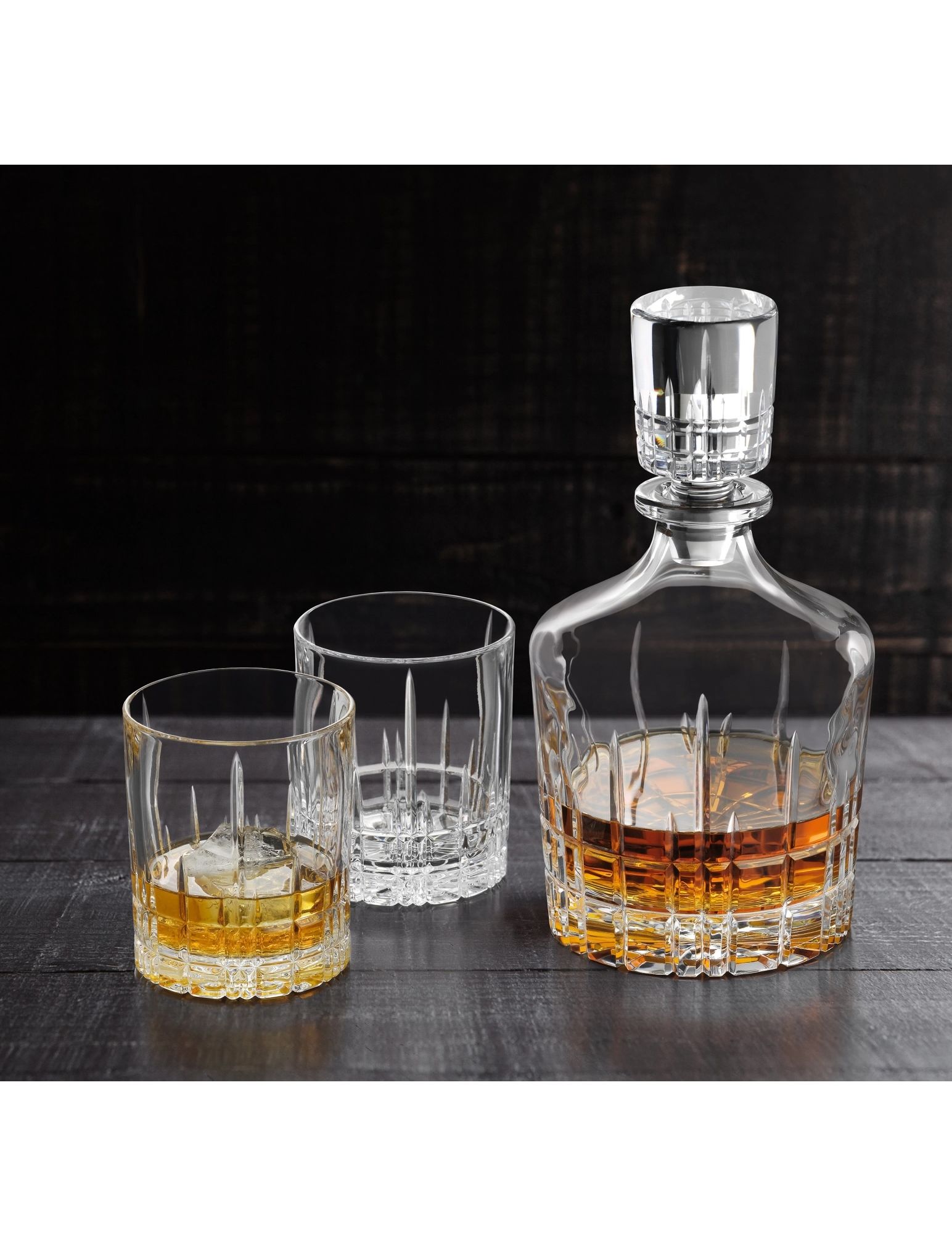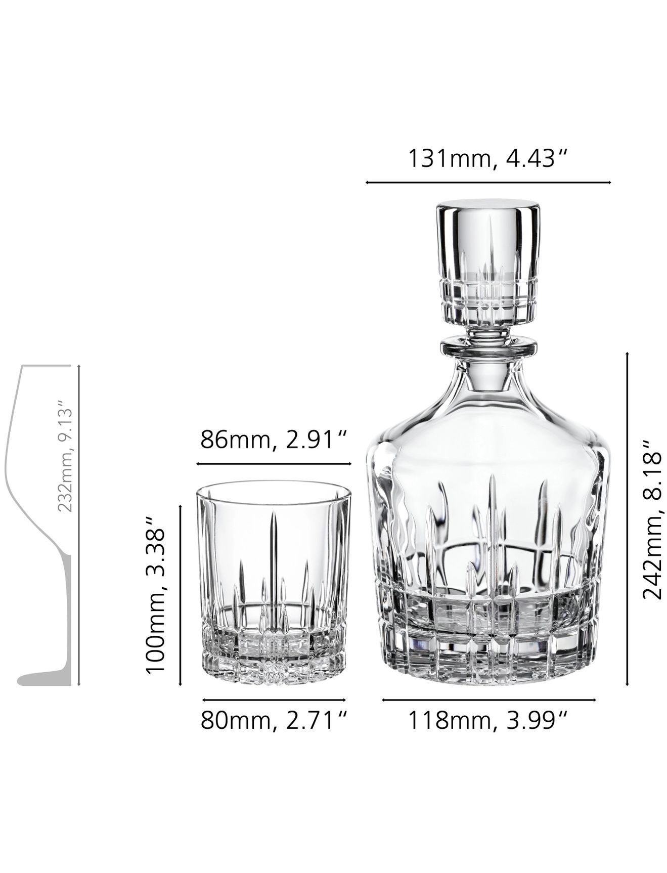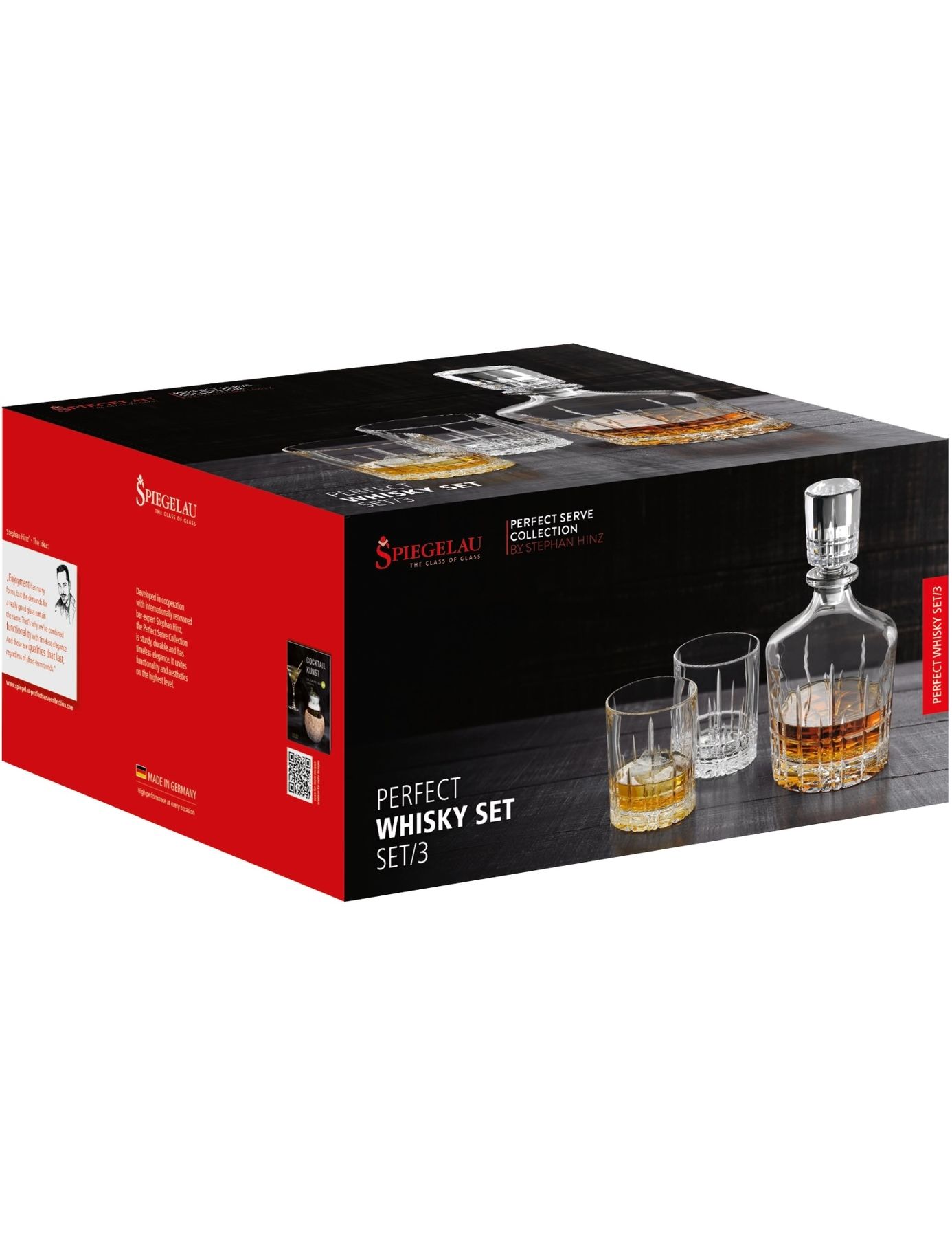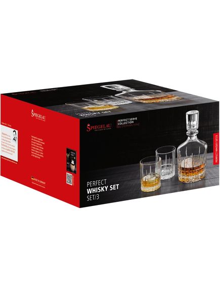 Набір для віскі складається з 2 склянок для віскі та відповідного графина для віскі із захоплюючим профілем. Цей унікальний і привабливий набір є ідеальним подарунком для любителя віскі, який хоче вивести свій улюблений алкоголь на новий рівень. Разом зі Стефаном Хінцем компанія SPIEGELAU розробила колекцію Perfect Serve. Сучасна серія барів, яка пропонує різноманітні розміри келихів від класичних стаканів до келихів для довгих напоїв, келихів із носом і купет, привертає увагу всіх поціновувачів: від вигляду до ваги в руці та звуку, келихи пропонують ідеальне задоволення в усіх відношеннях.