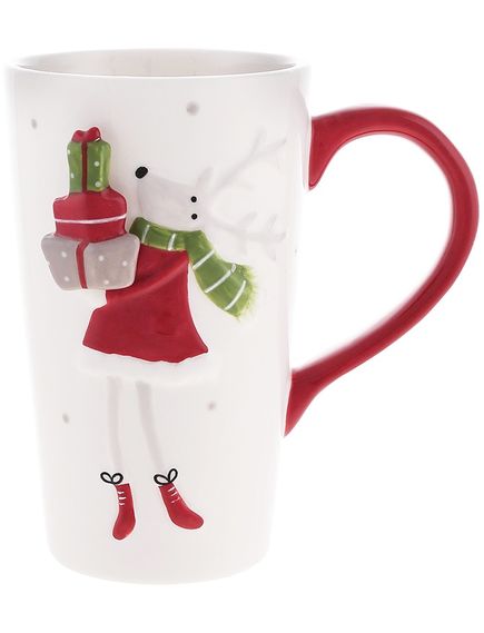 Чашка новорічна Олень з Подарунками біла 550 мл
