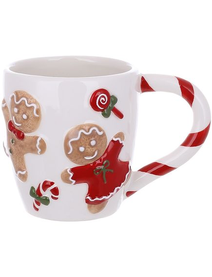 Чашка новорічна керамічна Пряникові Чоловічки Біла 400 мл