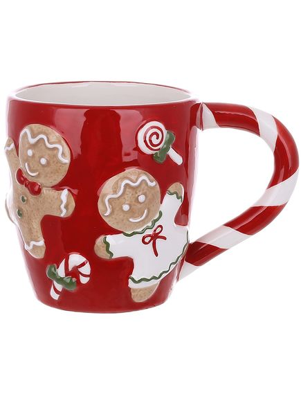 Чашка новорічна Пряникові Чоловічки червона 400 мл
