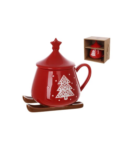 Чашка порцелянова новорічна Санчата з кришкою 300 мл