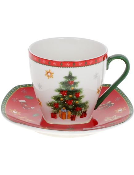 Чашка з блюдцем новорічна порцелянова Різдвяна Класика 220 мл