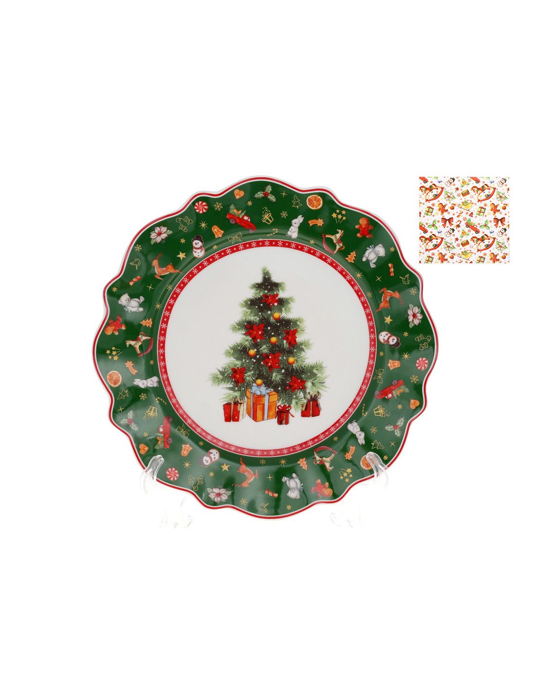 Тарілка десертна новорічна порцелянова Різдвяна Класика зелена 20,5 см