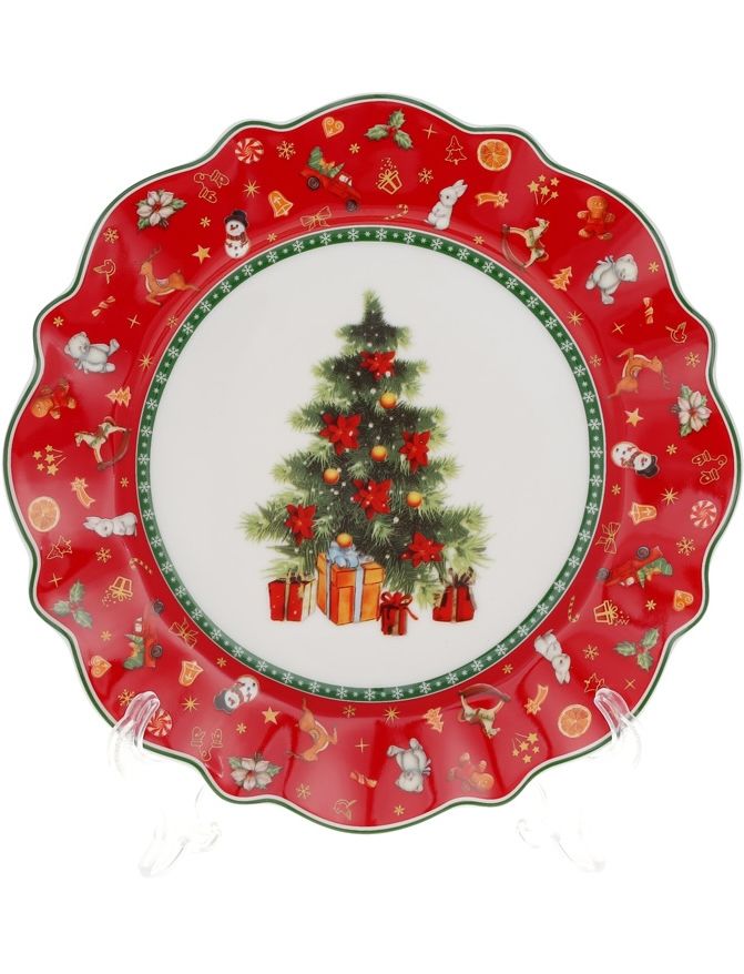 Тарілка десертна новорічна порцелянова Різдвяна Класика червона 20,5 см