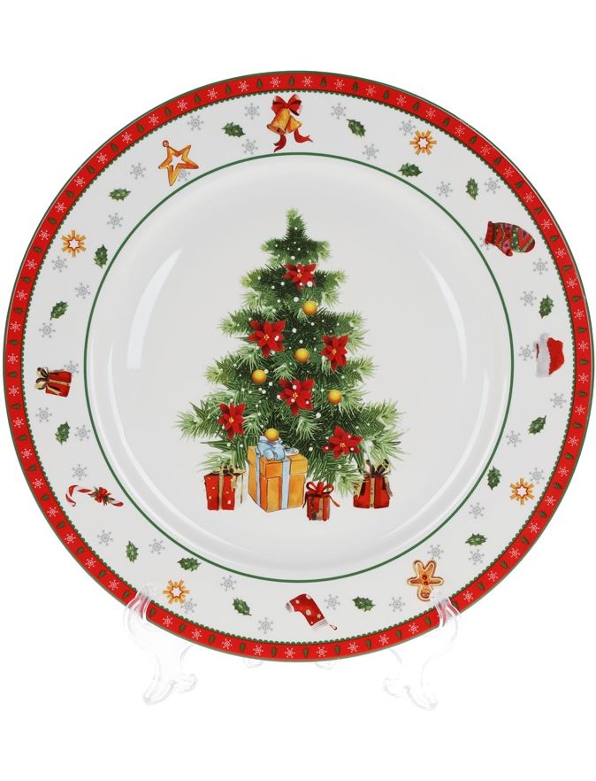 Тарілка обідня порцелянова новорічна Різдвяна Класика з Ялинкою 26,7 см