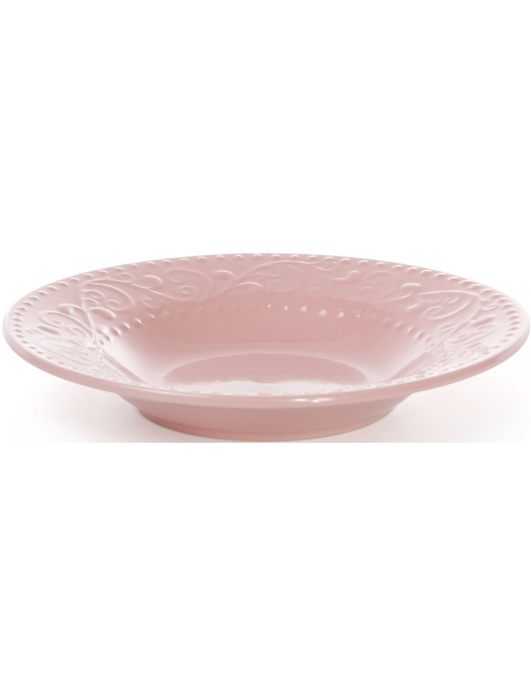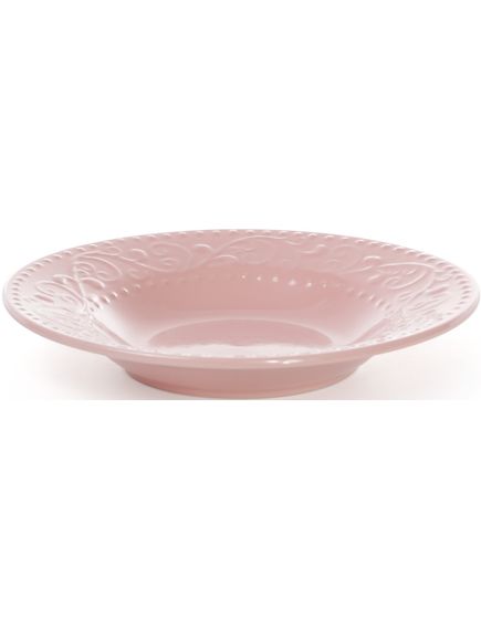 Супова тарілка з кераміки діаметром 23 см у ніжно-рожевому кольорі. Завдяки глибокій формі вона ідеально підходить для подачі перших страв, салатів або пасти. Виріб відрізняється міцністю, стильним дизайном із можливим рельєфним оздобленням по краю та підходить для щоденного використання або сервірування святкового столу.