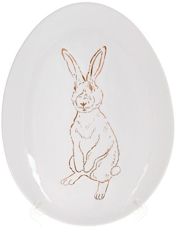 Блюдо для подачі керамічне Кролик біло-золоте 27 см