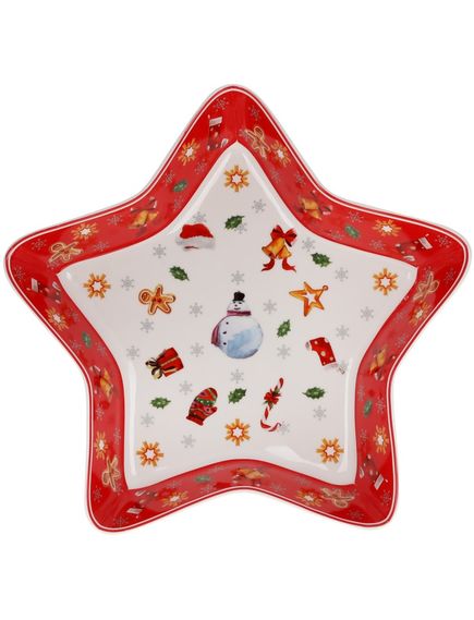 Блюдо фігурне порцелянове новорічне Зірка Червона 28 см