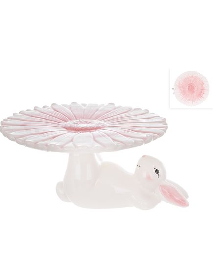 Підставка для торта та випічки керамічна Пасхальний Кролик з Квіткою рожевою 22,8 см