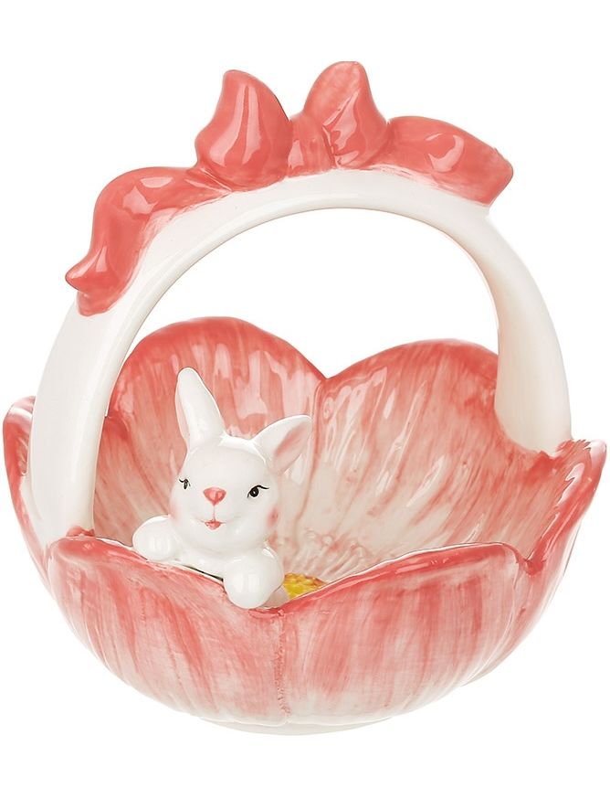Цукерниця керамічна Пасхальний Кролик з Квіткою рожевою 20 см