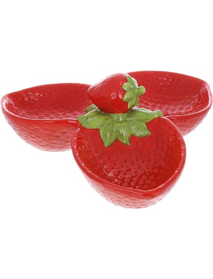 Керамічна трьохсекційна менажниця "Полуниці" – це яскравий та практичний елемент для сервірування столу. Вона поєднує в собі оригінальний дизайн і зручність, дозволяючи ефектно подавати різні закуски або соуси. Завдяки трьом окремим секціям, ви зможете розмістити декілька видів частувань, не змішуючи їх.