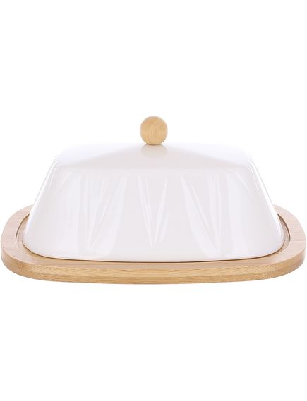 Маслянка порцелянова на бамбуковій підставці Naturel Grace 14,5 см