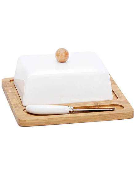 Маслянка порцелянова на бамбуковій підставці з ножем Naturel 14,5 см