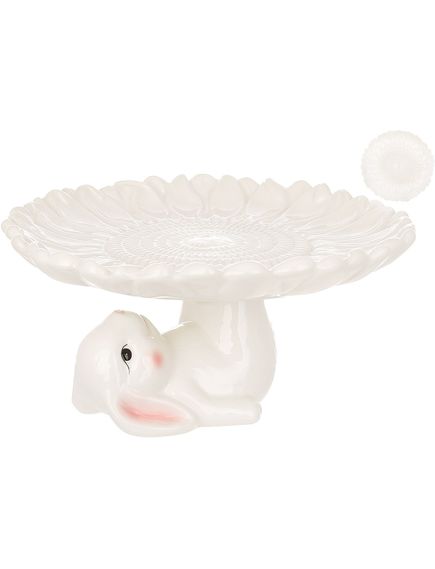 Підставка для торта та випічки керамічна Пасхальний Кролик з Квіткою білою 26 см