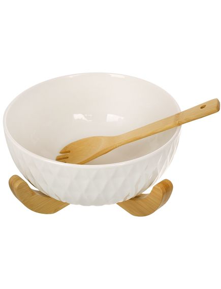 Салатник порцеляновий на бамбуковій підставці з вилкою Naturel 3 л