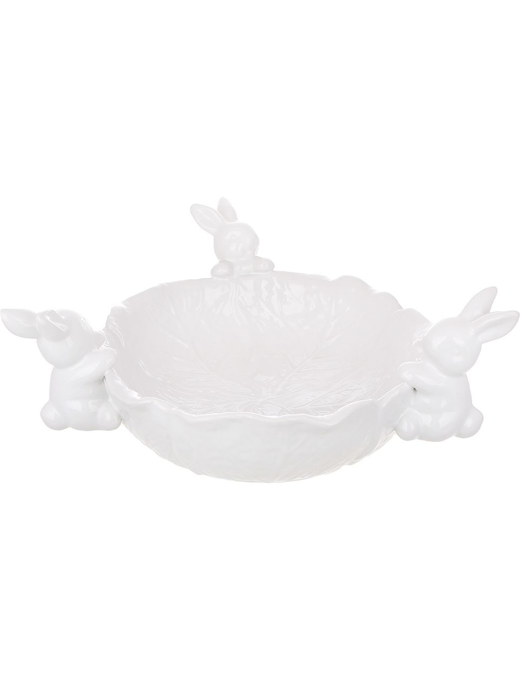 Салатник керамічний з фігурами кроликів Капустина біла 1,5 л