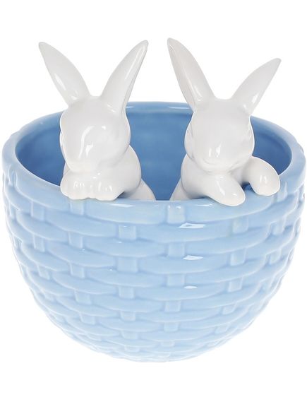 Цукерниця керамічна-кашпо Зайчики в Кошику блакитна 15 см
