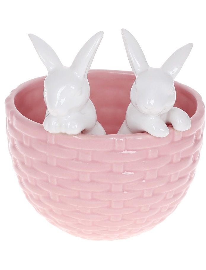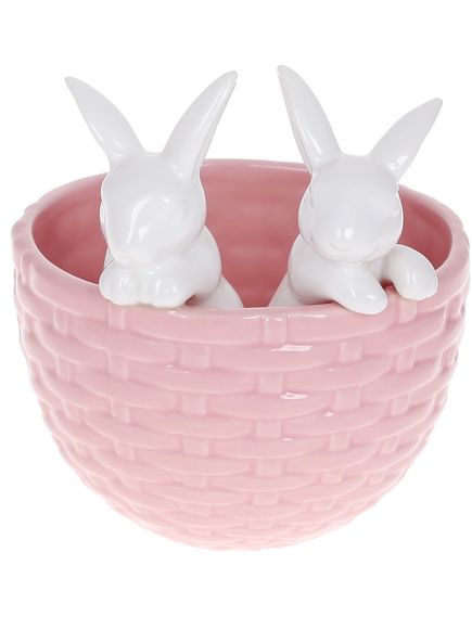 Цукерниця керамічна-кашпо Зайчики в Кошику рожева 15 см