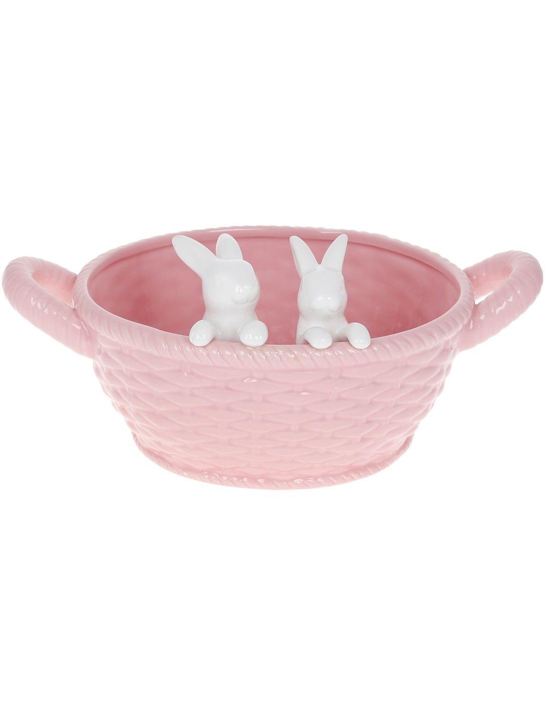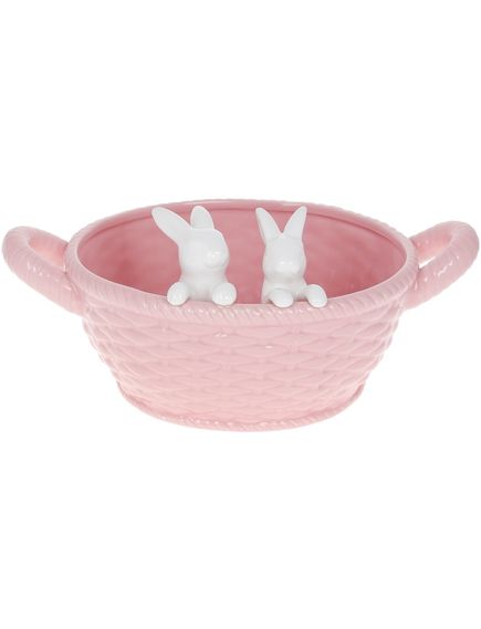 Цукерниця керамічна-кашпо Зайчики в Кошику рожева 29 см