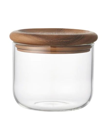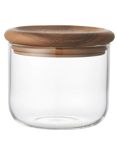 BAUM - жароміцна скляна каністра з дерев'яною кришкою з акації. М’яко вигнуту форму зручно тримати, а кришка розроблена таким чином, що каністри стабільно складаються. Він оснащений силіконовим кільцем для щільного ущільнення та ідеально підходить для зберігання сухих продуктів.